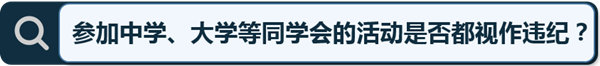 提问背景:《条例》第68条关于“党员领导干部违反有关规定组织、参加自发成立的老乡会、校友会、战友会等”的规定,“违反有关规定组织、参加”和“自发成立”的含义是什么?中学、大学都有同学会,参加这样同学会的活动是否都视作违纪?怎样的同学会会被视为违规组织? 中央纪委法规室:《中国共产党纪律处分条例》第六十八条规定,党员领导干部违反有关规定组织、参加自发成立的老乡会、校友会、战友会等的,要根据情节轻重给予处分。正确理解该条需要把握三点: 一是该条规定的主体仅是“党员领导干部”,体现了对党员领导干部的高要求。 二是该条所称的“有关规定”是指2002年中央纪委、中央组织部、总政治部联合下发的《关于领导干部不得参加自发成立的“老乡会”“校友会”“战友会”组织的通知》。即组织、参加自发成立的老乡会、校友会、战友会等行为构成违纪的前提是违反该规定。该通知明确要求,领导干部不得参加自发成立的老乡、校友、战友之间的各种联谊会之类的组织,不得担当这类联谊会的发起人和组织者,不得在这类联谊会中担任相应职务;不得借机编织“关系网”,搞亲亲疏疏,团团伙伙,更不得有“结盟”“金兰结义”等行为。 三是该条所称的自发成立的老乡会、校友会、战友会,是指未经登记注册的老乡会、校友会、战友会。因此,党员包括领导干部在正常范围内的老乡、校友、战友聚会并不违反党的纪律。要注意区分该违纪行为与组织参加老乡、校友、战友之间的正常聚会活动,只有违反规定组织参加自发成立的老乡会、校友会、战友会等才是违纪。